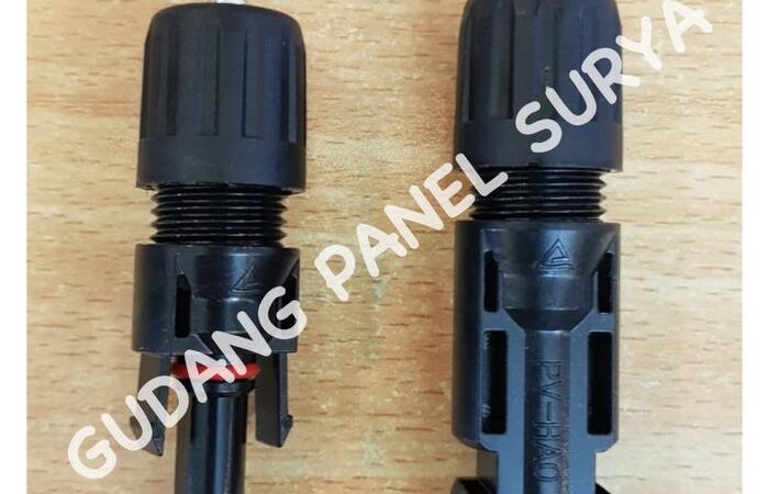 - MC4: Merupakan merek dagang untuk jenis konektor berulir yang paling umum digunakan pada panel surya modern. Nama ini sering digunakan untuk menyebut semua konektor sejenisnya.