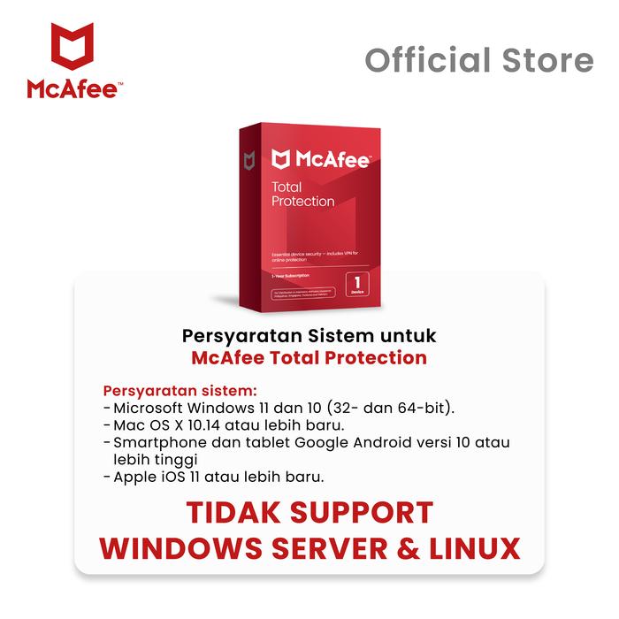 Dapatkan keamanan digital terdepan dengan McAfee Total Protection. Software ini melindungi PC, Mac, smartphone, dan tablet Anda dari ancaman virus, malware, ransomware, dan situs phishing yang berbahaya. Nikmati perlindungan privasi dengan VPN yang menyembunyikan lokasi dan mengenkripsi data Anda, serta Manajer Kata Sandi untuk menyimpan semua kredensial login Anda dengan aman.