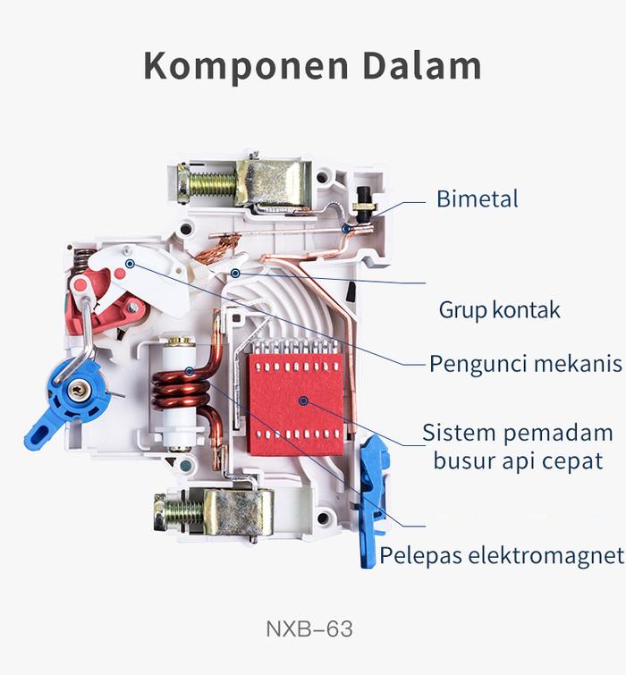 MCB (Miniature Circuit Breaker) adalah komponen proteksi listrik yang digunakan di panel listrik untuk mencegah kerusakan akibat beban lebih (overload) dan arus pendek (short circuit). Produk tipe baru NXB-63 dengan kapasitas pemutusan (breaking capacity) 6 kA menawarkan keandalan tinggi dan telah memenuhi standar internasional.