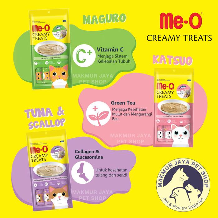 Berikan yang terbaik untuk kucing Anda dengan Me-O Creamy Treats! Snack creamy lembut dengan rasa autentik yang disukai kucing, terbuat dari bahan berkualitas seperti tuna asli. Cocok sebagai hadiah atau makanan selingan untuk mencegah kebosanan.