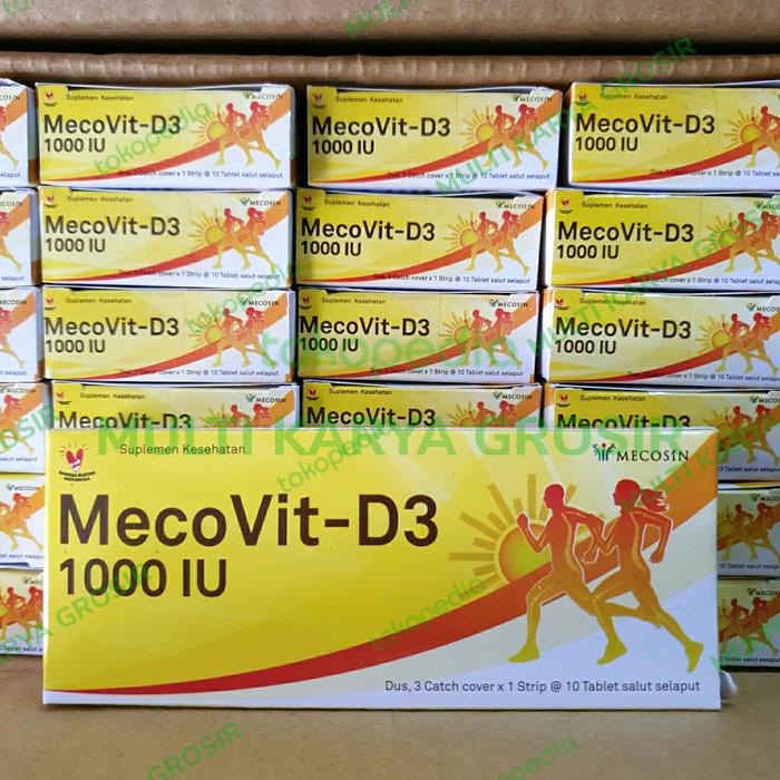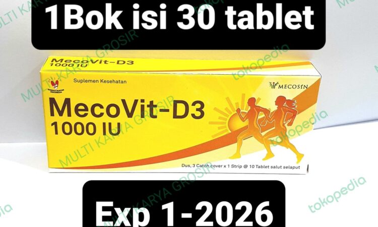 Mecovit D3 mengandung Cholecalciferol (Vitamin D3) 1000 IU dalam bentuk tablet yang mudah dikonsumsi. Setiap dus berisi 30 tablet dengan masa berlaku hingga Januari 2026.