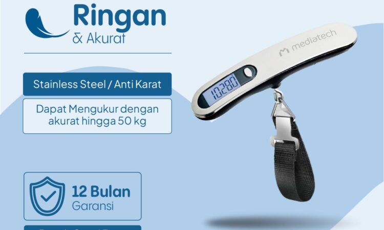 Jangan biarkan kekhawatiran kelebihan bagasi mengganggu rencana perjalanan Anda. Timbangan Koper Mediatech LS 220 hadir dengan desain stainless steel metallic yang kokoh dan elegan, menjadikannya alat travel yang essential.
