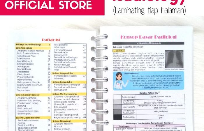 | Isi Lengkap & Praktis | Berisi panduan membaca X-Ray untuk kondisi umum, CT Scan, dan pemeriksaan seperti BNO IVP, histerosalpingografi, serta mammografi. |