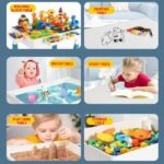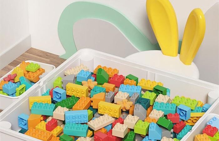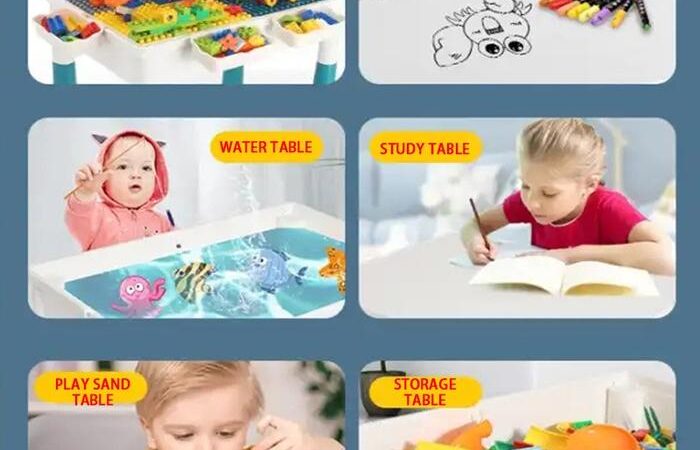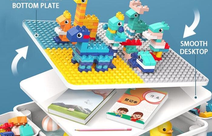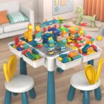 Fitur unggulannya adalah meja yang memiliki bak penyimpanan multifungsi! Bagian dalam meja dapat dialihfungsikan menjadi area bermain sensori untuk pasir kinetik atau air, memberikan pengalaman bermain yang beragam. Setelah bermain, semua blok dapat disimpan rapi di dalamnya.