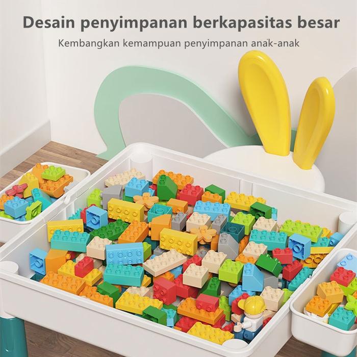 Rangsang imajinasi dan perkembangan motorik anak dengan Meja Bangunan Bunny yang serba guna ini. Lebih dari sekadar meja mainan, ini adalah pusat aktivitas lengkap yang dirancang untuk tumbuh kembang buah hati Anda. Terbuat dari plastik ABS berkualitas tinggi yang aman dan tahan lama, meja ini dilengkapi dengan ratusan blok bangunan partikel besar yang mudah digenggam oleh tangan mungil, cocok untuk anak usia 1 tahun ke atas.