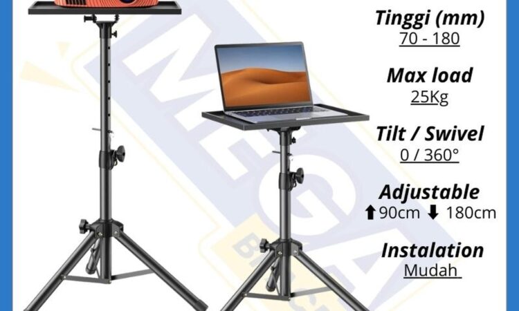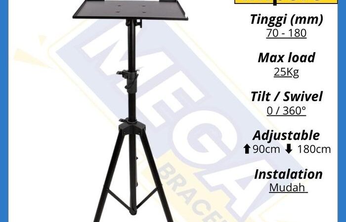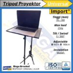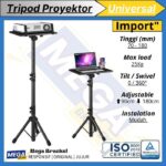 • Tray / Tatakan: Platform atau nampan datar yang dipasang di atas tripod sebagai tempat meletakkan proyektor atau perangkat lainnya.