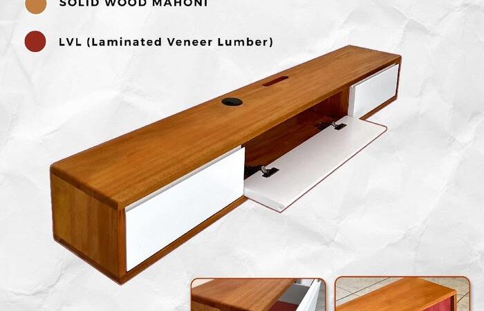 Tampilkan keindahan ruang keluarga dengan Meja TV Gantung Minimalis kami. Dirancang dengan gaya aesthetic yang timeless, furniture ini tidak hanya berfungsi sebagai rak TV yang kokoh tetapi juga menjadi elemen dekoratif yang mempercantik sudut ruangan Anda. Tersedia dalam berbagai ukuran panjang, mulai dari 120cm hingga 220cm, untuk disesuaikan dengan kebutuhan dan luas ruang Anda. Dibuat dari bahan kayu Mahoni Solid pilihan dengan finishing warna Natural Pintu Putih yang elegan, menjadikan setiap unitnya investasi jangka panjang untuk rumah Anda.