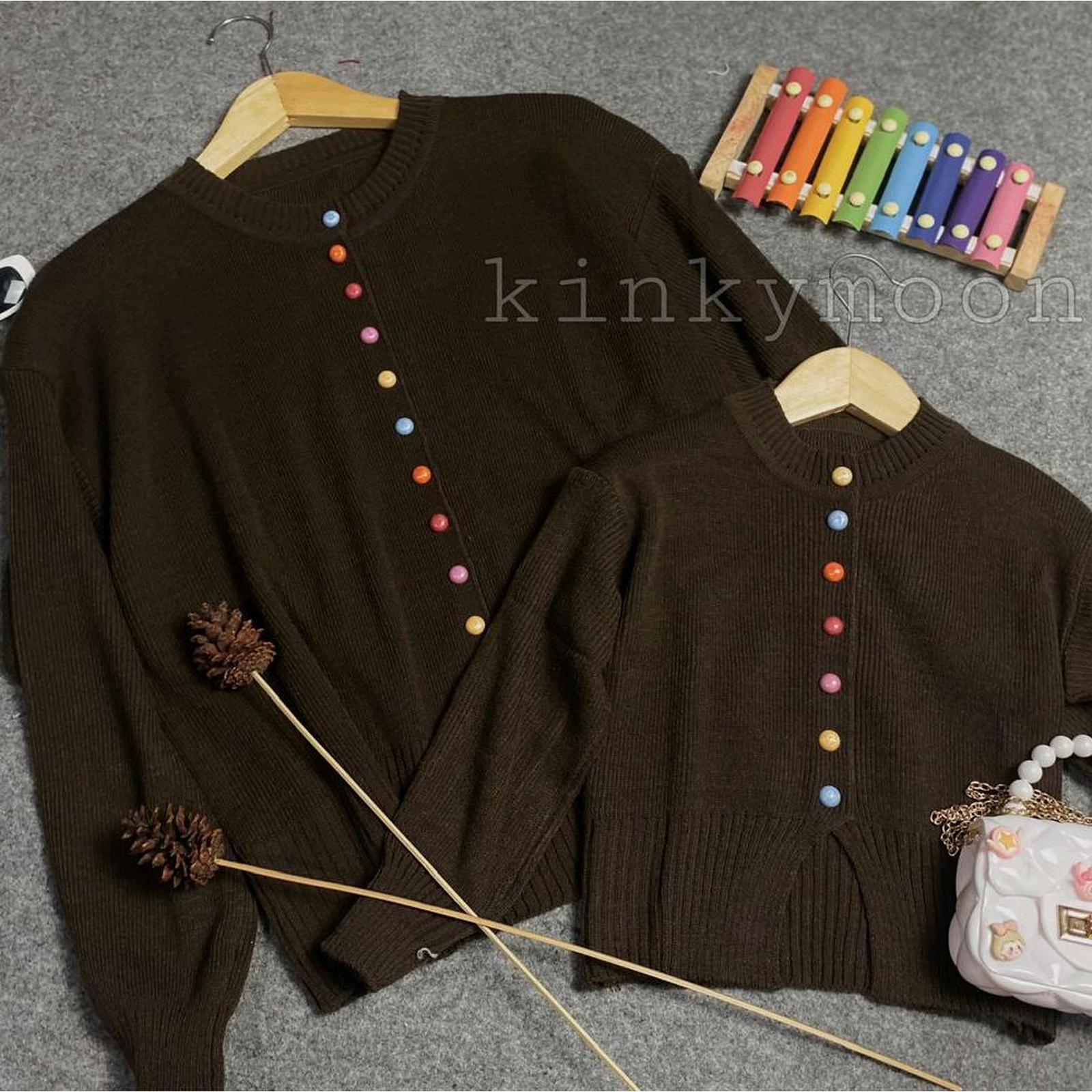 Tampil serasi dan hangat bersama si kecil dengan Melisa Cardigan Couple. Terbuat dari bahan rajut Woll Acrylic yang lembut di kulit, nyaman dipakai seharian, dan memberikan kehangatan yang sempurna. Cardigan ini didesain dengan kancing aktif di bagian depan yang memudahkan untuk memakai dan melepasnya. Keunikan tampilan hadir dari variasi kancing warna-warni yang cerah dan menarik, membuatnya berbeda dari cardigan biasa.