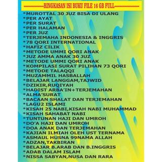 - Kapasitas memori 16GB dengan file lengkap Al Quran 30 juz beserta terjemahan Bahasa Indonesia.
