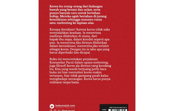 Buku ini mengajarkan bahwa menjadi "korea" bukanlah tentang latar belakang, melainkan tentang pola pikir. Orang-orang "korea" adalah mereka yang berani keluar dari zona nyaman, tidak takut miskin, dan memiliki banyak akal untuk bertahan hidup serta meraih kesuksesan. Mereka menerima keadaan tetapi tidak pasrah; mereka menggunakan kondisi tersebut sebagai pijakan untuk melompat lebih tinggi. Buku karya Komandan Bambang Pacul ini adalah panduan wajib bagi siapa saja yang ingin mengubah nasib, memiliki mentalitas kuat, dan tidak mudah patah arang ketika menghadapi tantangan hidup.