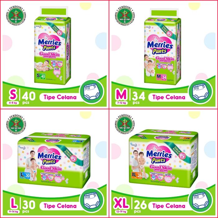 Popok celana Merries Pants didesain khusus untuk memudahkan para ibu dan kenyamanan maksimal bagi bayi yang mulai aktif bergerak. Dengan material yang sangat lembut seperti kapas, popok ini aman untuk kulit bayi yang sensitif dan tidak menyebabkan iritasi.