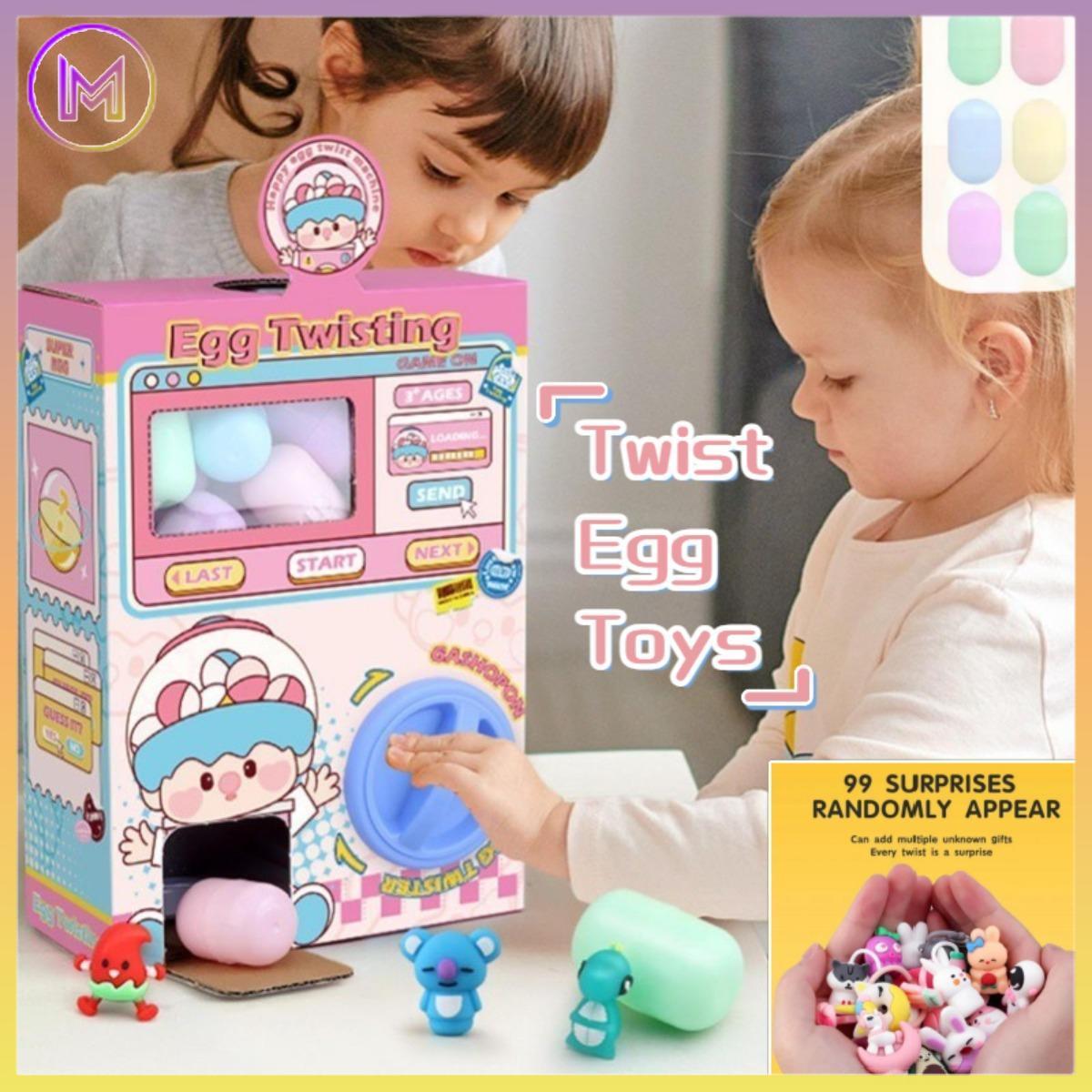 - Twist Egg Toys: Mainan berbentuk telur yang berisi kejutan dan biasanya diperoleh dengan memutar atau membuka mesin.