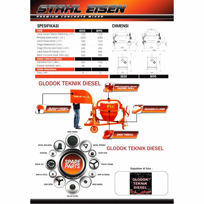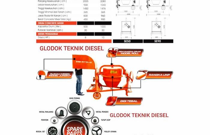 - Molen 500 Liter + Mesin Diesel 8 PK Elektrik Starter (tanpa aki)