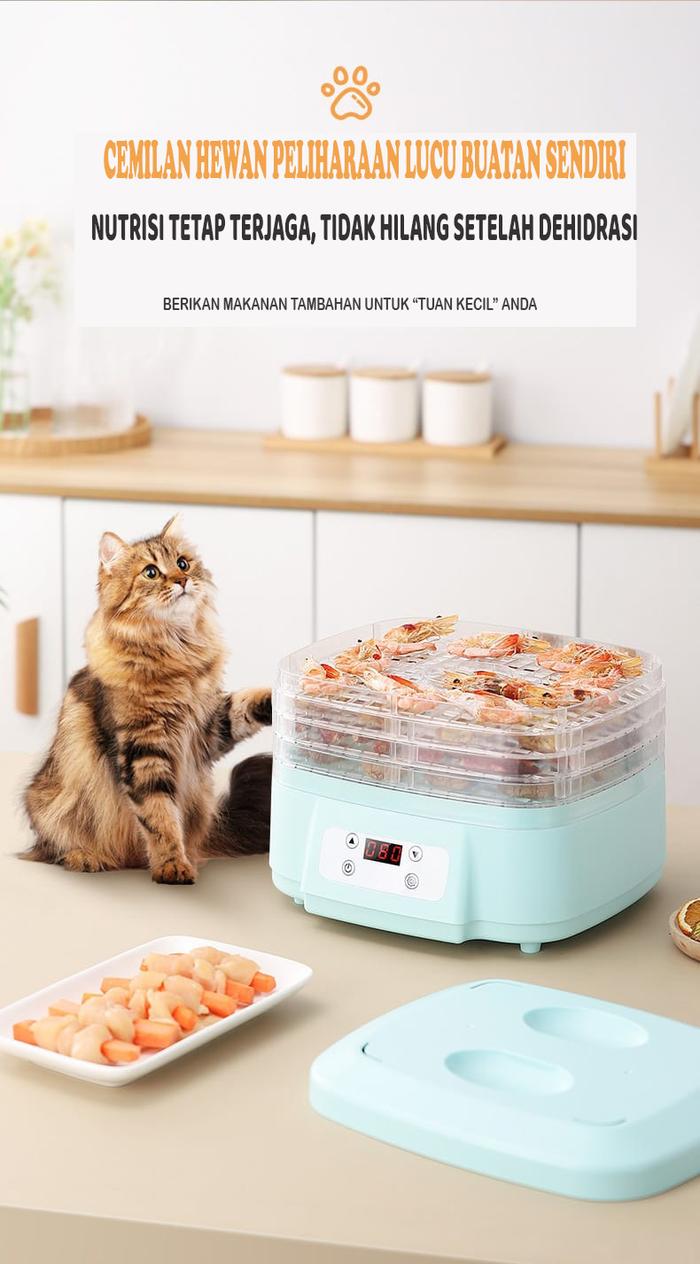 Mesin ini cocok untuk berbagai kebutuhan, termasuk pembuatan keripik buah, dendeng, bumbu kering, hingga makanan hewan peliharaan. Desain ringkas dan mudah dibersihkan membuatnya ideal untuk penggunaan rumah tangga maupun bisnis kecil.