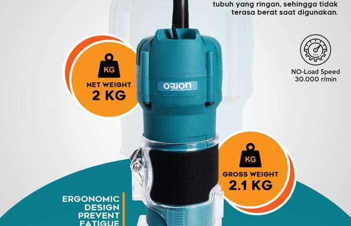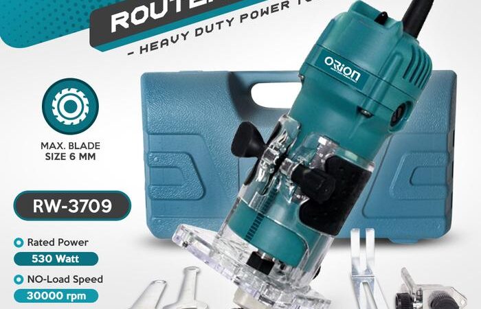 Tingkatkan efisiensi dan kualitas pengerjaan kayu Anda dengan Router Trimmer Orion RW-3709. Dirancang untuk penggunaan berat, mesin ini menjadi pilihan utama para pengrajin kayu profesional dan industri mebel. Dengan tenaga listrik 530W dan kecepatan tanpa beban hingga 30,000 rpm, alat ini mampu memotong, membentuk, dan menghaluskan kayu dengan hasil yang presisi dan halus.