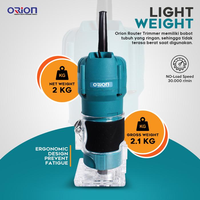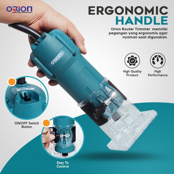 Tingkatkan efisiensi dan kualitas pengerjaan kayu Anda dengan Router Trimmer Orion RW-3709. Dirancang untuk penggunaan berat, mesin ini menjadi pilihan utama para pengrajin kayu profesional dan industri mebel. Dengan tenaga listrik 530W dan kecepatan tanpa beban hingga 30,000 rpm, alat ini mampu memotong, membentuk, dan menghaluskan kayu dengan hasil yang presisi dan halus.