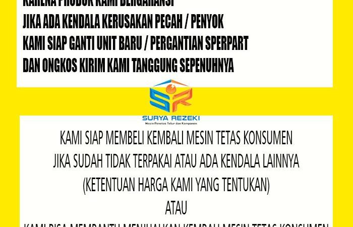 | Garansi | – Servis: 1 tahun – Sparepart: 3 bulan |
