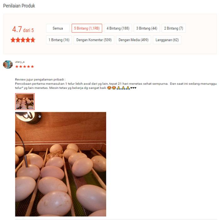 - Sudah teruji dengan hasil penetasan optimal.