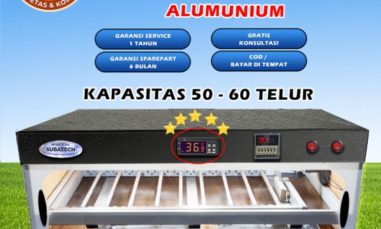 | Pengaturan Suhu | Thermostat digital mengontrol lampu pemanas secara otomatis untuk menjaga stabilitas suhu penetasan optimal. |