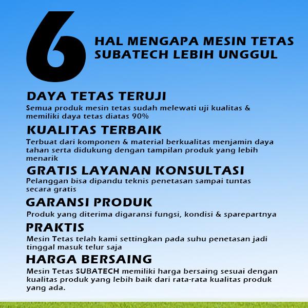 Setiap unit telah melalui proses pengujian mutu dan disetel siap pakai. Dapatkan juga gratis konsultasi teknis untuk mendukung kesuksesan usaha penetasan Anda.