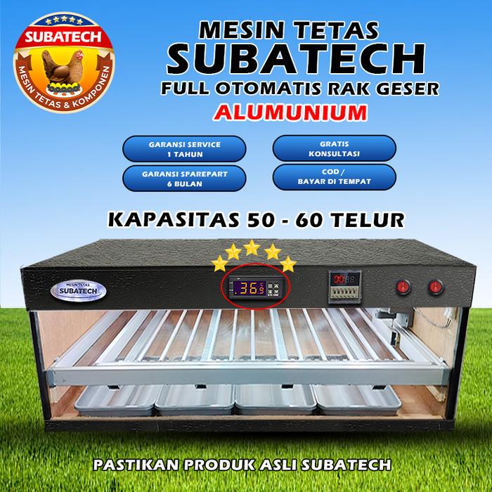 Hadirkan solusi penetasan telur yang presisi dan efisien untuk usaha Anda. Mesin tetas full otomatis ini dirancang khusus dengan sistem rak geser dan kapasitas ideal 50-60 telur ayam, menjadikannya investasi tepat untuk peternak pemula maupun profesional.