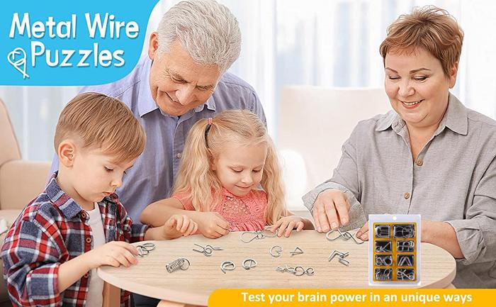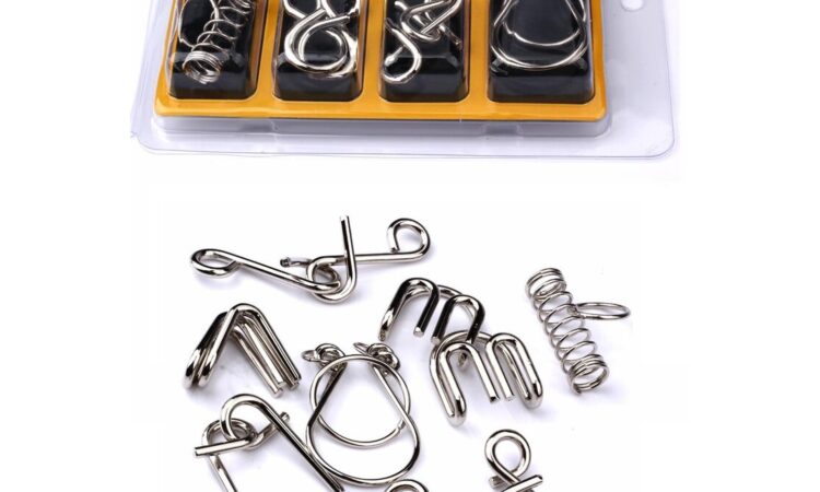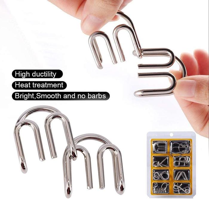 Jumlah Puzzle8 buah teka-teki logam klasik dengan desain unik dan tingkat kesulitan yang bervariasi.