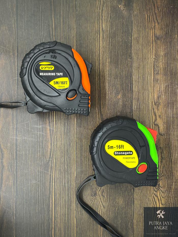- Meteran Karet Roll: Alat ukur berbahan karet fleksibel yang dapat digulung, biasa digunakan untuk mengukur panjang dalam konstruksi atau pekerjaan rumah tangga.