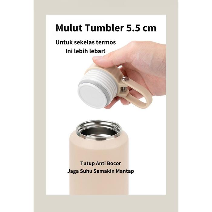 | Fitur Unggulan | – Desain chubby stylish dengan mulut lebar untuk mudah isi es dan bersihkan. – Tutup stainless steel anti karat + pegangan lipat praktis. – Teknologi vacuum insulated double wall untuk insulasi dingin/hangat tahan lama. – Bebas BPA (BPA-free) dan aman untuk makanan (food grade). – Garansi original 100% TYS. |