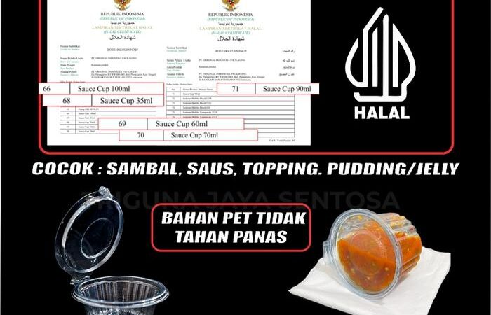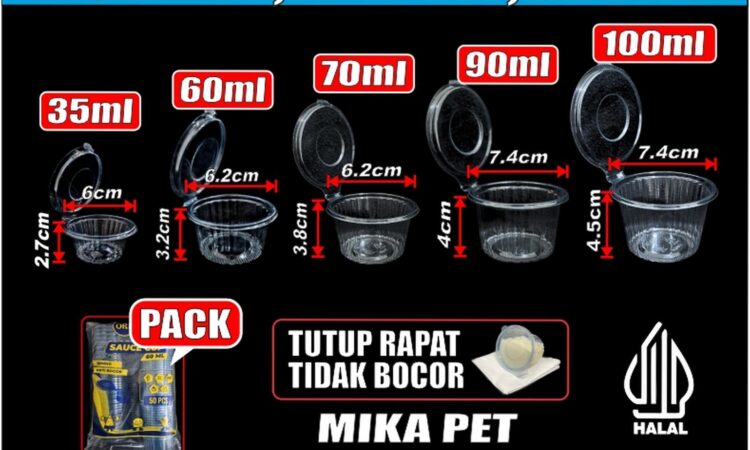 Dapatkan kemasan saos dan puding praktis dengan tutup sambung yang rapat. Tersedia dalam berbagai ukuran untuk menyesuaikan kebutuhan bisnis Anda. Bahan PET yang kokoh dengan desain bergaris, dipastikan HALAL.