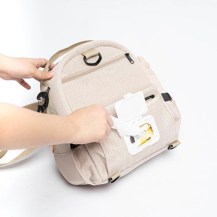 | Multi Kompartemen | Saku khusus untuk tisu basah/kering, botol minum, selang pompa, dan kantong ASI. Atas untuk pompa & perlengkapan. |