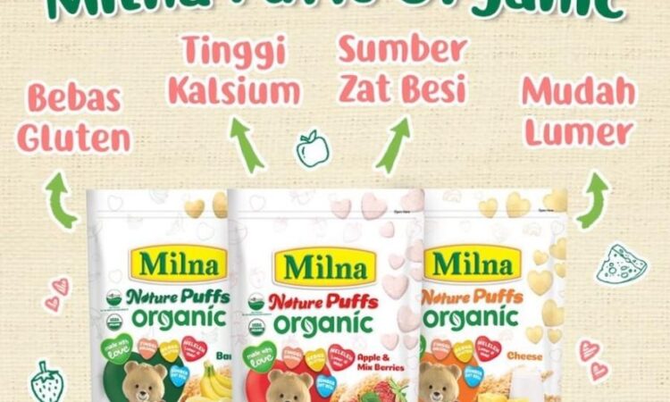 Lengkapi nutrisi si kecil dengan Milna Nature Puff Organic—cemilan bergizi, lezat, dan aman untuk tumbuh kembang optimal!