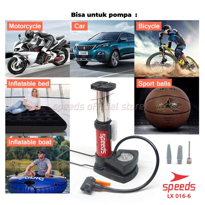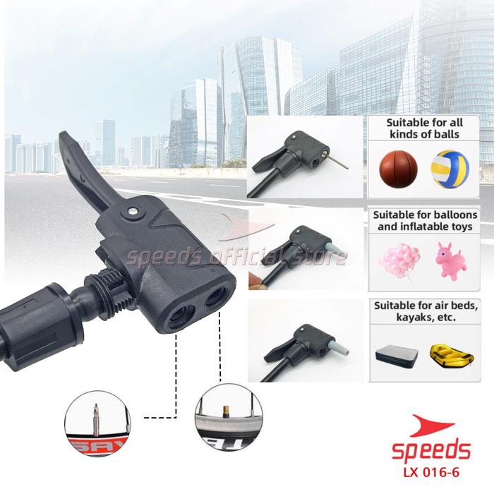 | Kompatibilitas | Semua jenis pentil standar (Schrader, Presta, Dunlop, bola, dll) |