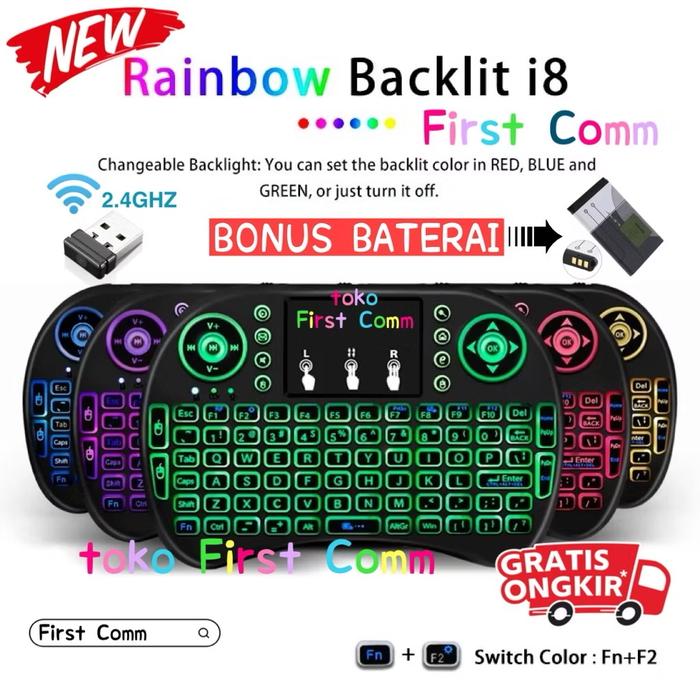 | Wireless 2.4G | USB receiver, jangkauan hingga 10 meter, kompatibel dengan TV Box, PC, Smart TV, dll. |