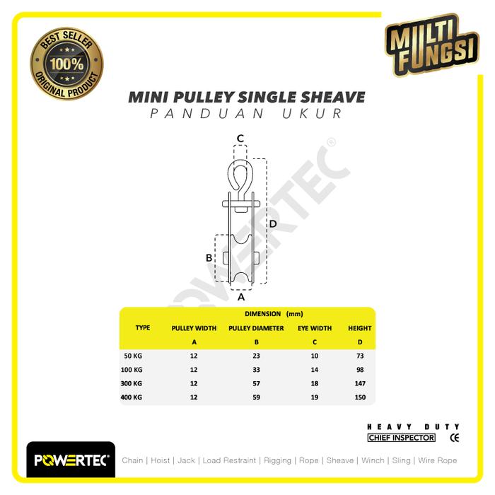 | • Tipe: Single Sheave (1 jalur roda) | • Distributor tunggal & resmi peralatan lifting POWERTEC |