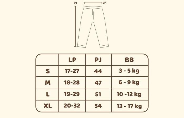 | Size | Lebar Pinggang (cm) | Panjang (cm) |