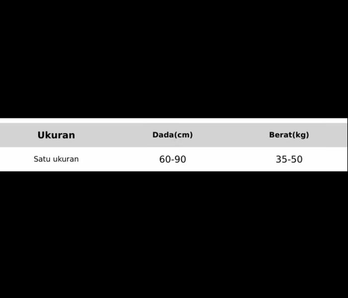 UkuranFree size (lingkar badan ±60-88 cm, panjang ±25 cm)
