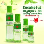 | Cap Lang Minyak Ekaliptus Aromatherapy | Minyak atsiri alami hasil penyulingan tanaman Eucalyptus globulus, membantu meredakan keluhan pencernaan, gatal, serta memberikan efek menenangkan melalui aromaterapi. Cocok untuk relaksasi dan refreshing. |