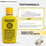 | Tidak Lengket & Tidak Panas: Nyaman digunakan, tidak mengganggu aktivitas sehari-hari. | Shower Cap Eksklusif: Meningkatkan penyerapan dan mencegah kutu kabur. | 2. Kocok botol sebelum digunakan. |