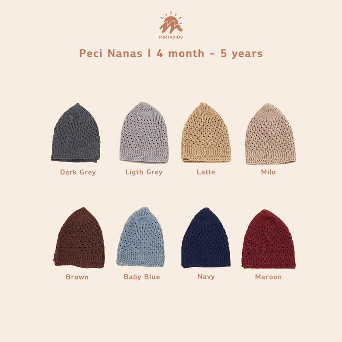 Mirtakids adalah brand fashion anak berkualitas asal Bandung dan merupakan sister brand dari Mirtazani yang telah berpengalaman sejak 2006. Kami menghadirkan peci rajut nanas dengan material terbaik untuk kenyamanan buah hati Ayah Bunda.