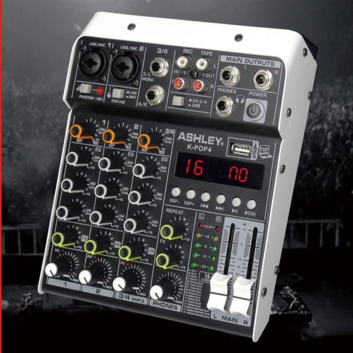 Tingkatkan kualitas audio dan kreativitas mixing Anda dengan Mixer Ashley K-pop4 4 Channel. Hadir dengan fitur Bluetooth dan USB untuk koneksi yang mudah dari smartphone atau PC, menjadikannya pusat audio yang serbaguna. Efek digital 16 DSP memberikan sentuhan profesional pada setiap proyek musik, podcast, atau siaran langsung Anda. Didesain dengan bodi plat besi yang kokoh dan dilengkapi Garansi Resmi Ashley selama 1 tahun untuk jaminan kepuasan dan keaslian produk.