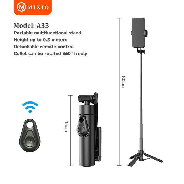Tongsis Bluetooth multifungsi yang dirancang untuk segala kebutuhan harian Anda. Dengan panjang maksimal 80 cm, perangkat ini sangat portabel karena dapat dilipat hingga hanya 15 cm, membuatnya mudah dibawa ke mana saja. Beratnya hanya 120 gram, sehingga tidak memberatkan tas atau kantong.