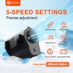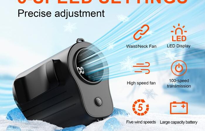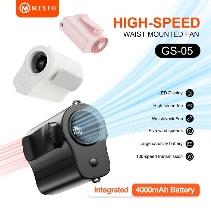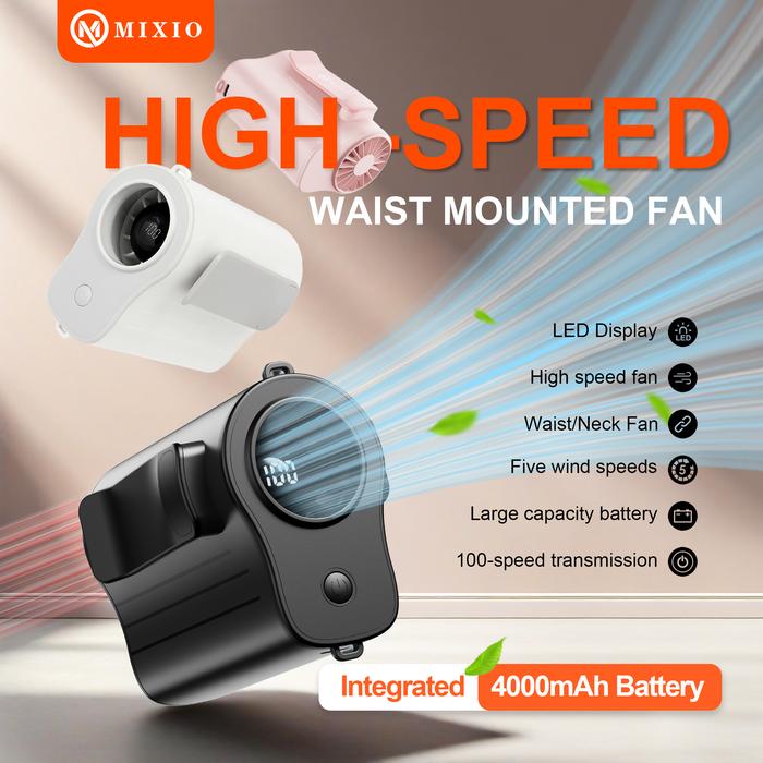 Nikmati kenyamanan angin sejuk yang kuat berkat lubang udara sudut lebar dan lima tingkat kecepatan yang dapat disesuaikan. Fitur multifungsi 3-in-1 memungkinkan Anda menggunakannya dengan berbagai cara: digantung di pinggang, diletakkan di atas meja, atau dipegang langsung di tangan.