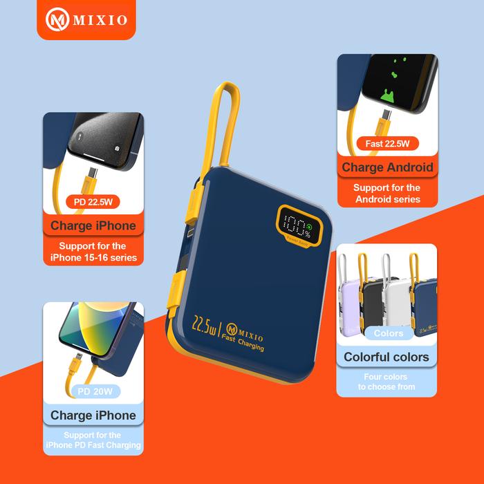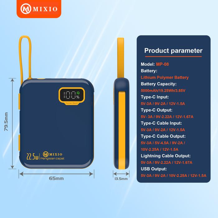 - AI-Charge™: Sistem pengisian daya cerdas dari Mixio yang secara otomatis mendeteksi jenis perangkat dan menyesuaikan output daya untuk memberikan kecepatan pengisian yang optimal dan aman.