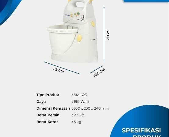 | Bahan Tahan Lama | Pengaduk (beater) dan pengocok telur (kneader) dari stainless steel anti karat. |