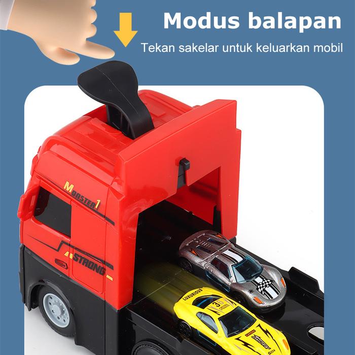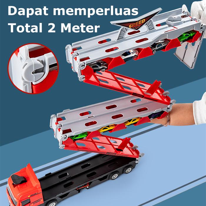 Wujudkan arena balap spektakuler di rumah! Mainan hauler truk ini dilengkapi dengan lintasan balap catapult yang dapat dikembangkan hingga 207 cm. Tekan satu tombol dan saksikan dua mobil mini meluncur bersamaan di dua jalur paralel untuk balapan yang seru dan penuh aksi.