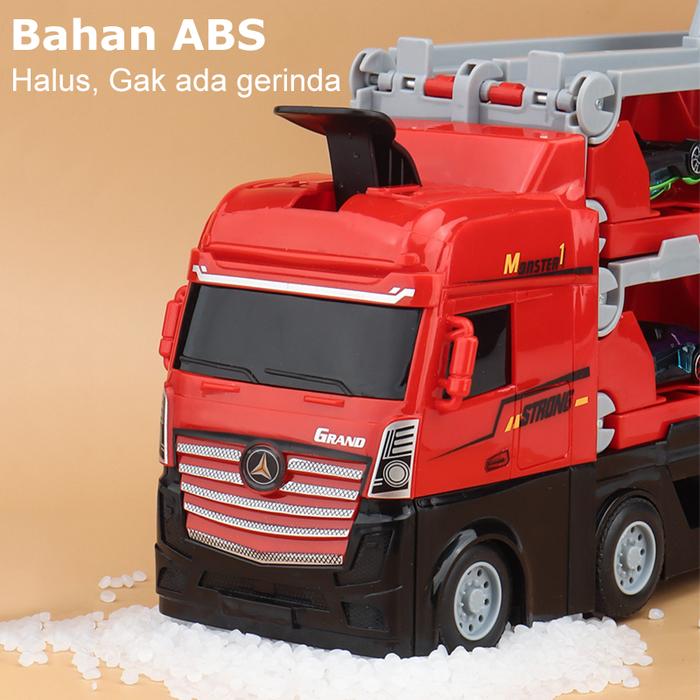 Truk container terbuat dari bahan ABS berkualitas tinggi, kuat, dan ramah lingkungan, menjamin keamanan dan daya tahan selama bermain. Desainnya yang detail dan kokoh mirip dengan truk hauler sungguhan. Setelah bermain, lintasan dapat dilipat dengan mudah dan disimpan rapi di dalam container truk, membuatnya hemat space dan praktis.