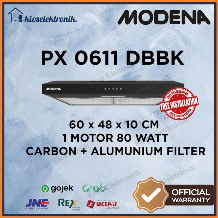 Tingkatkan pengalaman memasak Anda dengan Cooker Hood Modena PX 0611 DBBK edisi terbaru. Desainnya yang slim dan elegan dengan bodi berwarna hitam menyempurnakan tampilan dapur modern Anda. Dilengkapi dengan motor berdaya 80 Watt dan kemampuan hisap udara hingga 200 m³/jam, hood ini sangat efektif mengusir bau, asap, dan uap grease secara cepat.