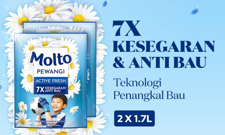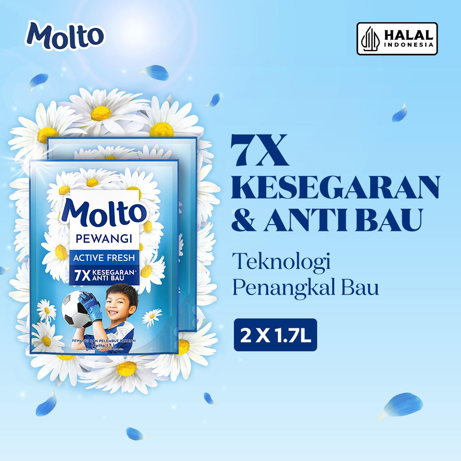 | Wangi Segar Sepanjang Hari | Aroma khas Active Fresh memberikan kesegaran 7x lebih lama dibandingkan varian Molto lainnya* dan efektif mencegah bau datang kembali. |