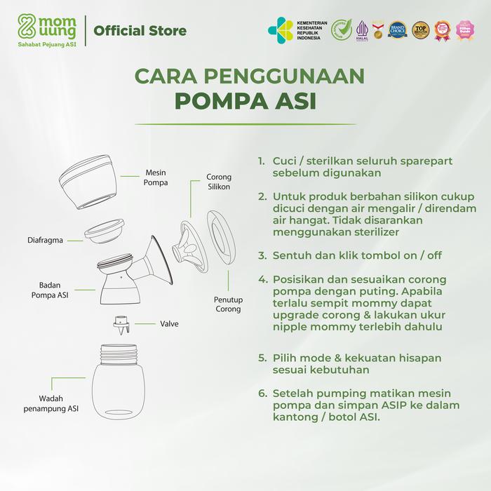 Kini semua komponen pengganti untuk pompa ASI portabel elektrik Anda tersedia di Mom Uung. Kami menyediakan beragam sparepart original dan berkualitas tinggi untuk memastikan pompa ASI Anda selalu berfungsi dengan optimal, nyaman, dan higienis.