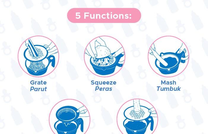 | Fungsi | Menghaluskan, menggiling, memeras buah, parut, tumbuk, dan saring makanan |